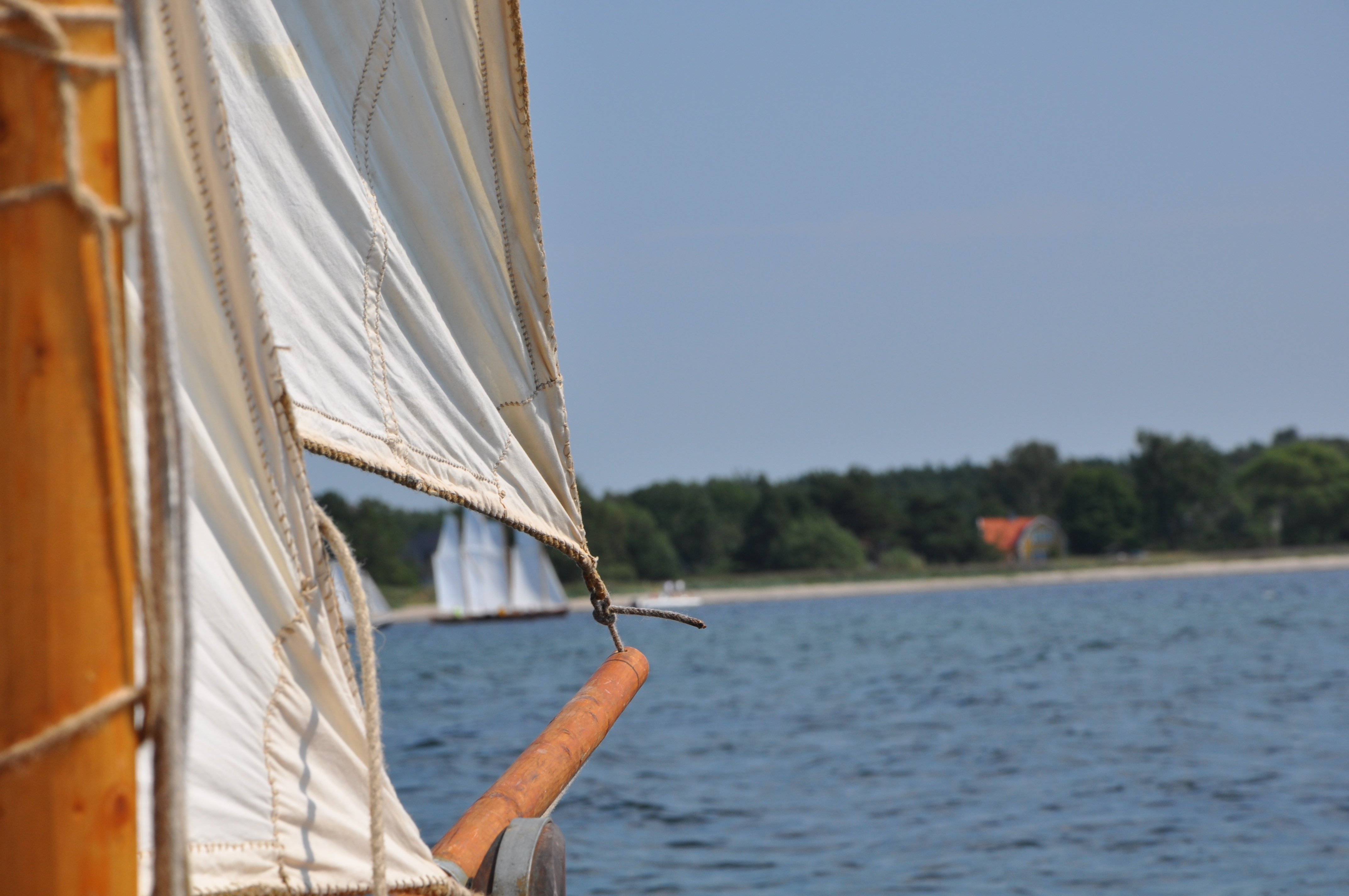 ...är det känsligt att skotningen är lagom att man inte får backvind i seglen eller skotar för hårt så båten krängs ner i onödan. Korrekt skotning gör att trycket på rodret neutraliseras. Båten skall dock vara något lovgirig.