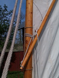 Det stående - rundhulten - master, sprin och klyvarbommar. Masten, spri och toppstänger görs för det mesta massiva i rakvuxen gran. Bästa tid för att ta ut ämnena är vintern, då vattenhalten är som lägst i träden. Spirorna fläck- eller spiralbarkas för att möjliggöra torkning utan att virket spricker.